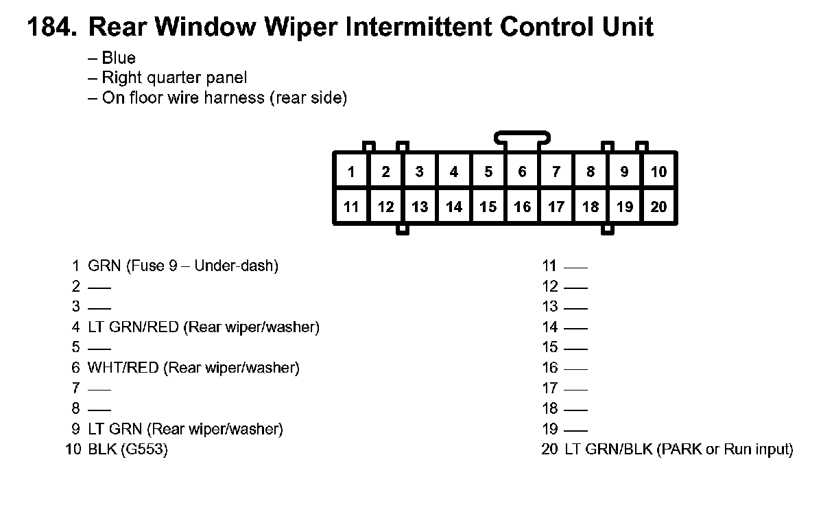 184. Rear Window Wiper Intermittent Control Unit: