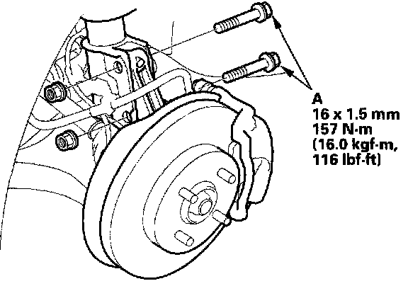 7. Replace the damper pinch bolts with the adjusting bolts (A), and adjust the camber angle.