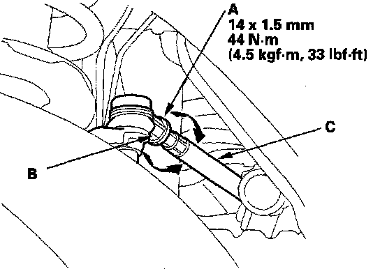 NOTICE: Do not loosen the special bolts (C) on the lower arm to adjust the alignment.