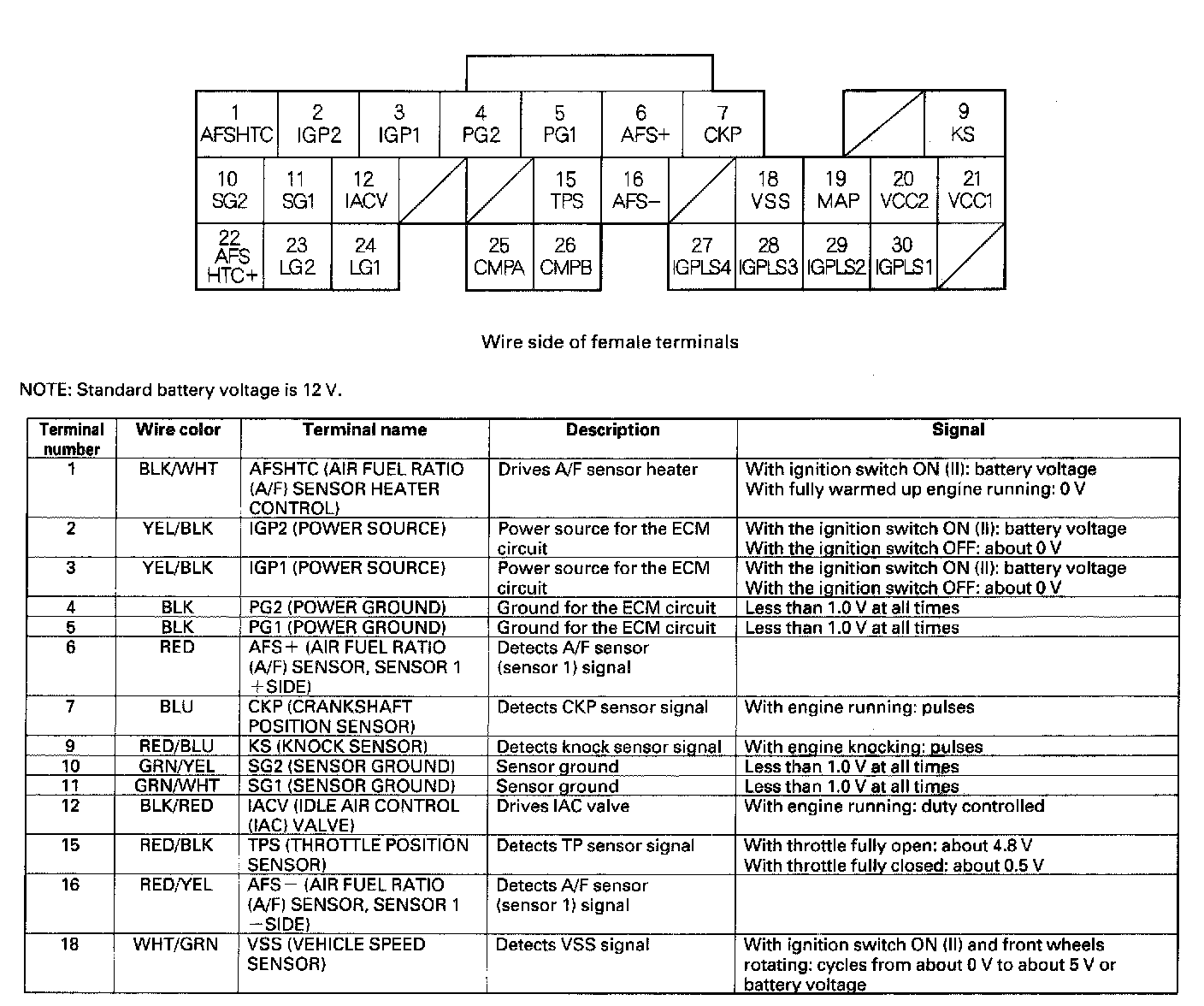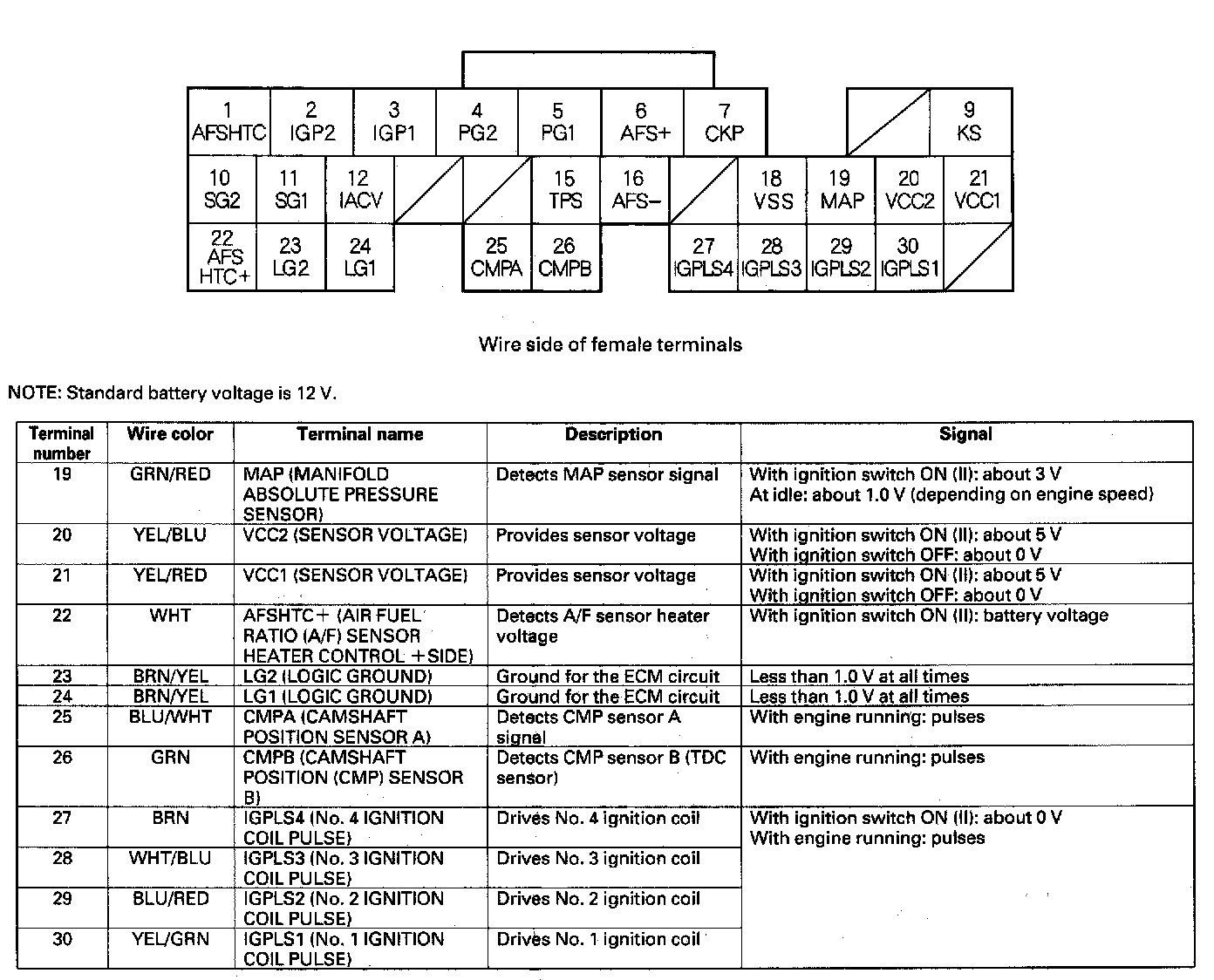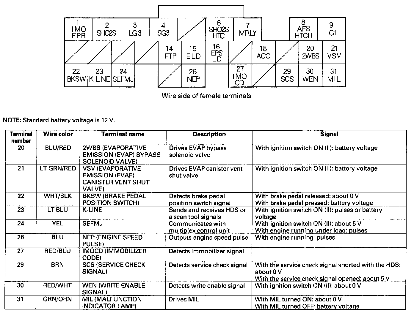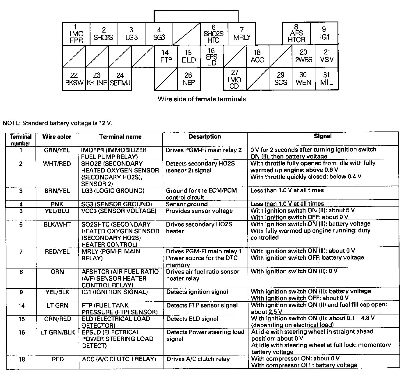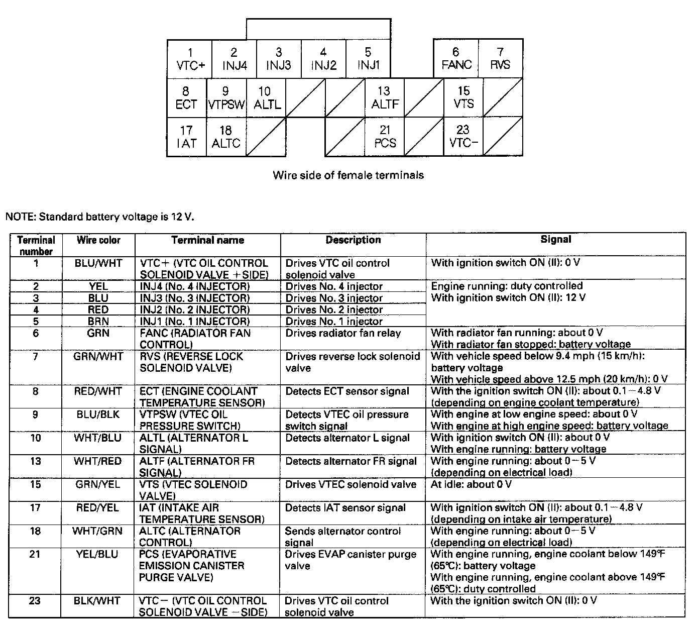 Home >> Honda >> 2004 >> Civic Si L4-2.0L >> Repair and Diagnosis >> Powertrain Management >> Computers and Control Systems >> Engine Control Module >> Testing and Inspection >> Pinout Values and Diagnostic Parameters