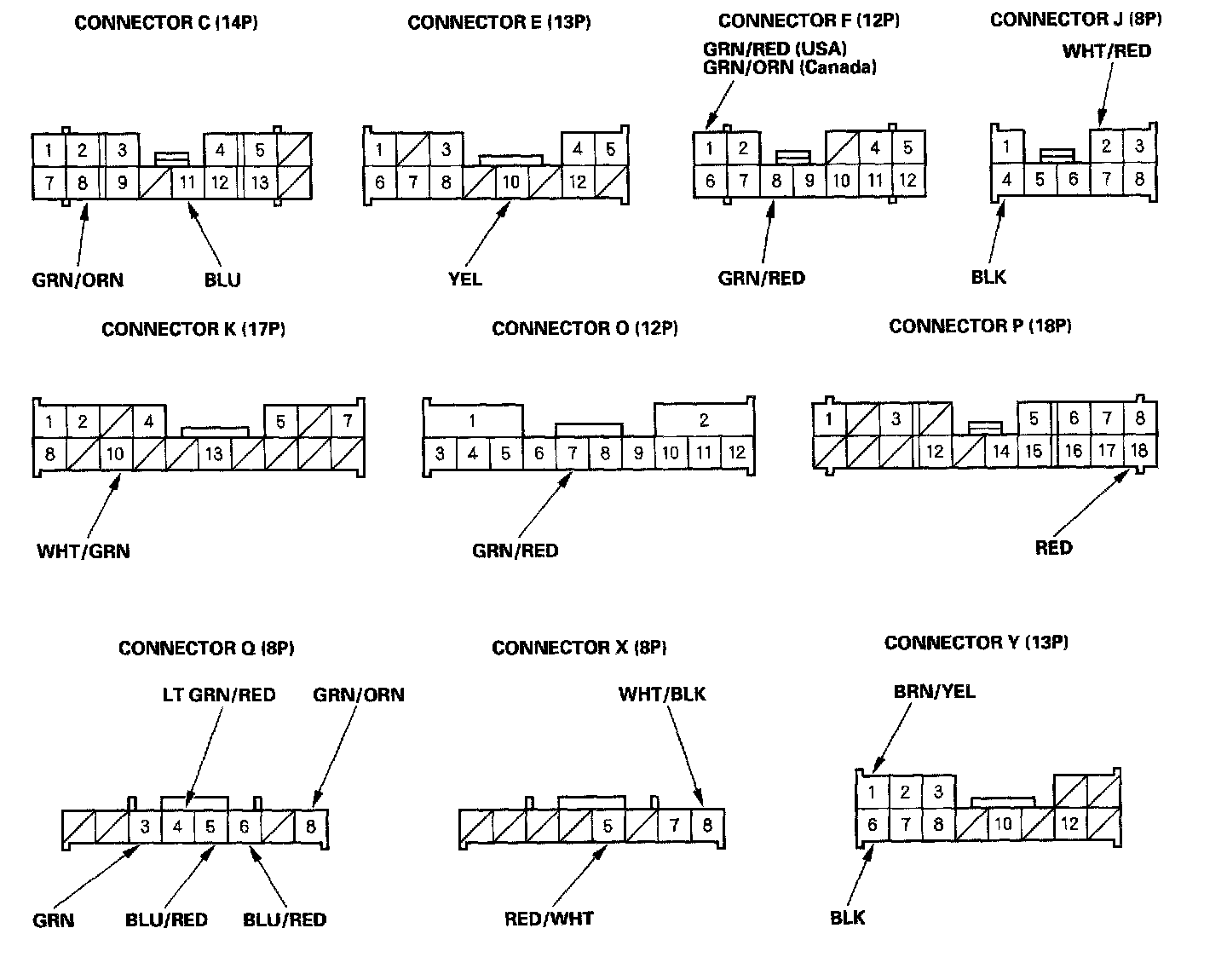 NOTE: All connectors are wire side of female terminals.