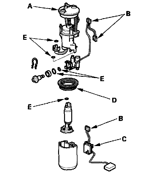 - When installing the fuel gauge sending unit (C), make sure the connection is secure and the connector (B) is firmly locked into place. Be careful not to bend or twist it excessively.