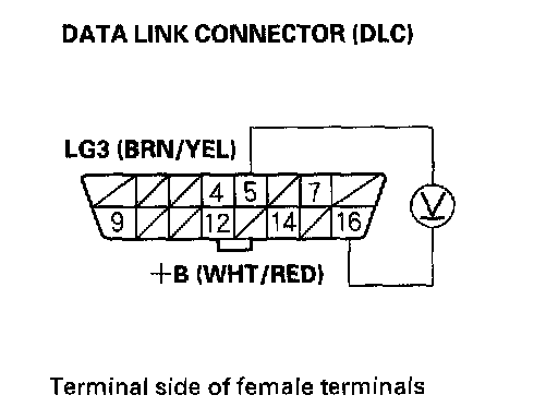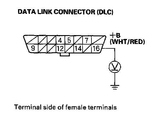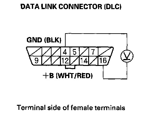 1. Measure voltage between DLC terminal No.16 and body ground.