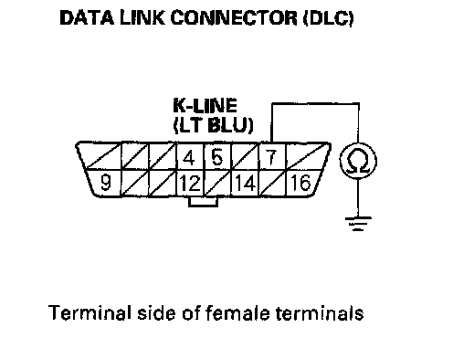 9. Check for continuity between DLC terminal No.7 and body ground.