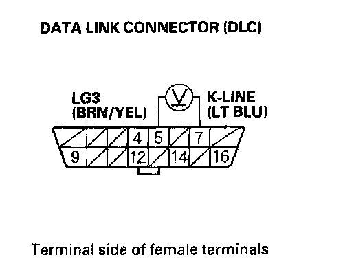 15. Measure voltage between DLC terminals No.5 and No.7.