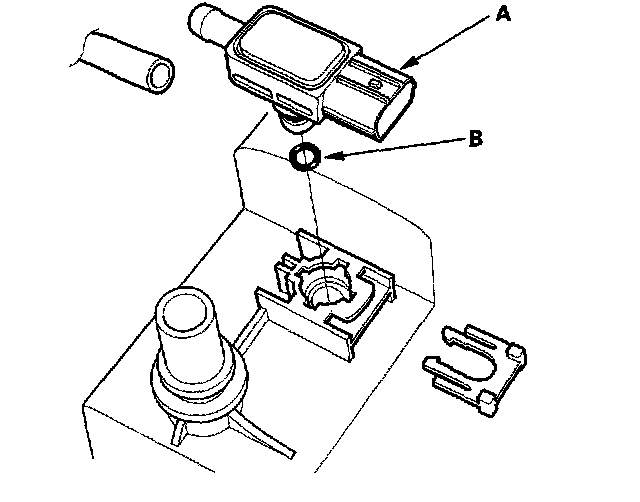 Install the sensor in the reverse order of removal with a new O-ring (B).