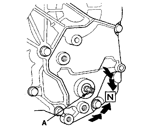 6. Make sure that the selector control shaft (A) is in the N position. If necessary, move the shift lever to the N position.