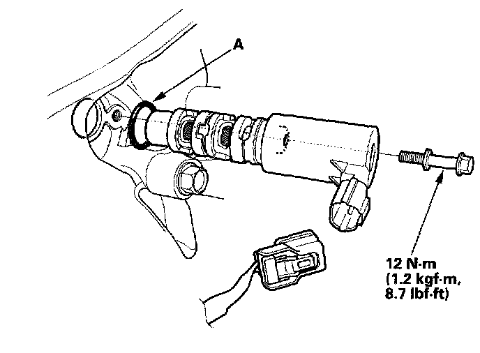 VTC Oil Control Solenoid Valve Removal/Test/Installation1. Disconnect the VTC oil control solenoid valve connector (A).