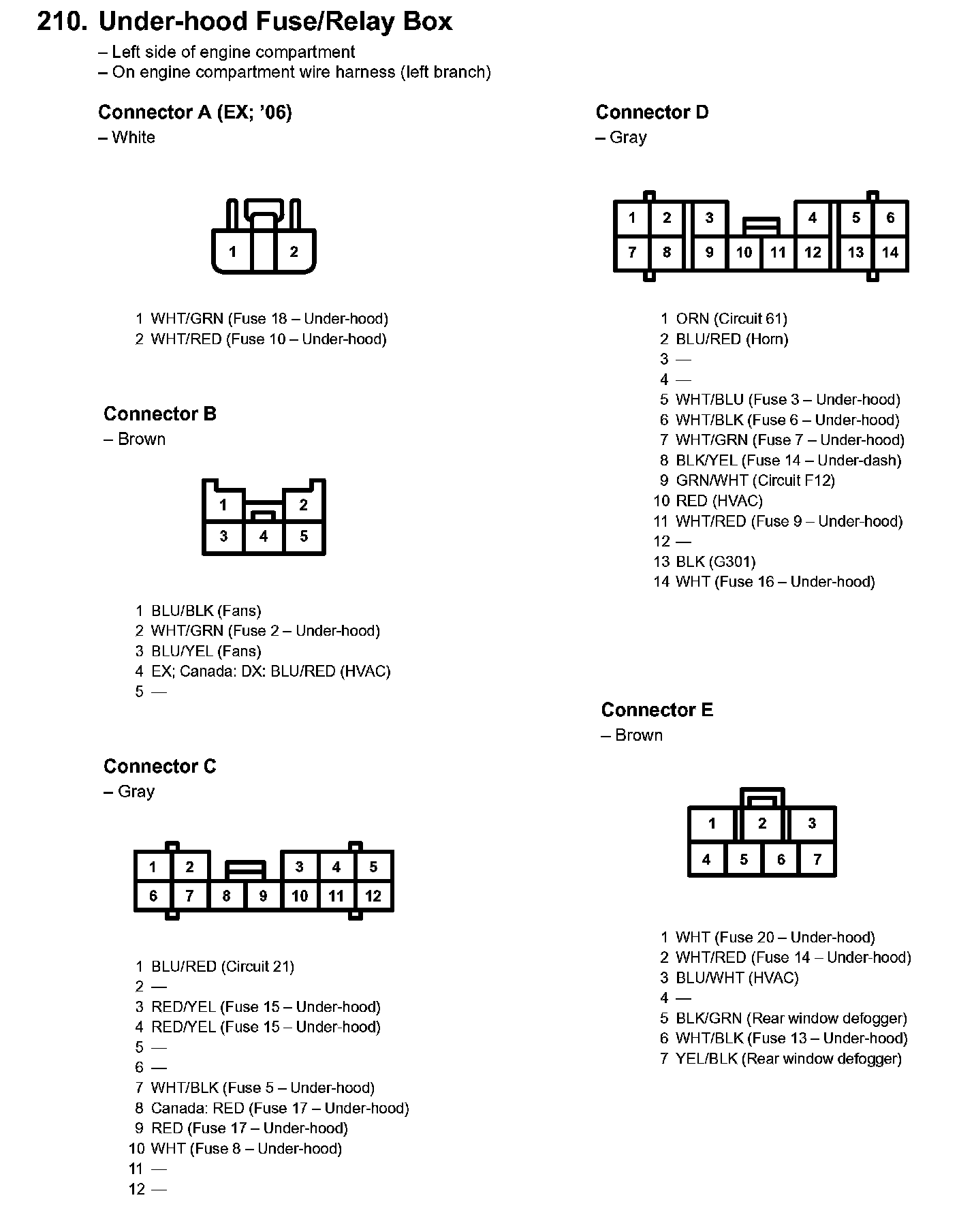 210. Under-hood Fuse/relay Box: