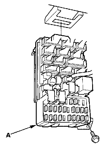 5. Remove the mounting bolt and the under-dash fuse/relay box (A).