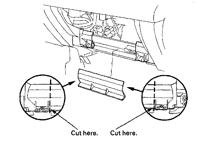 3. Cut the plastic cross brace in the glove box opening with diagonal cutters in the area shown, and discard it.