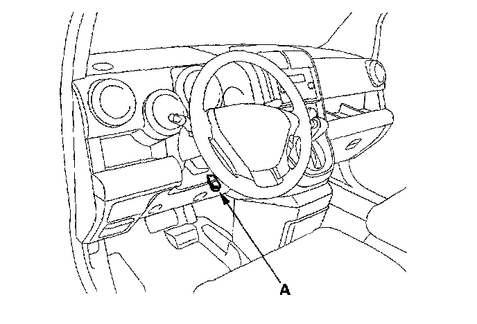 2. Connect the HDS or Honda Interface Module (HIM) to the Data Link Connector (DLC) (A) located under the driver's side of dashboard.
