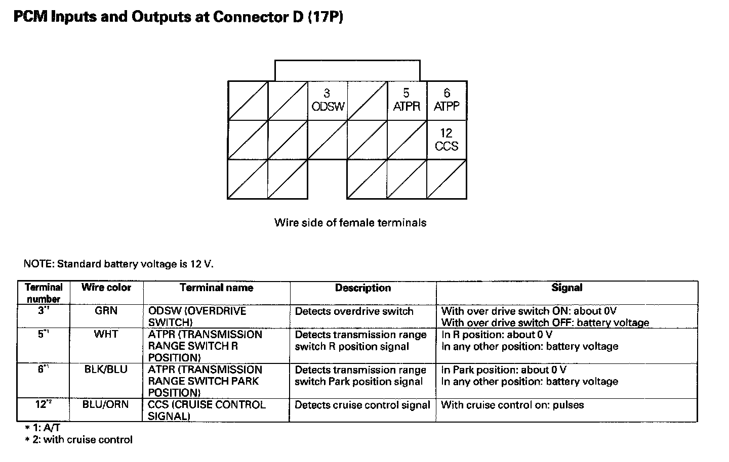 PCM Inputs And Outputs At Connector C (22P) Part 2:
