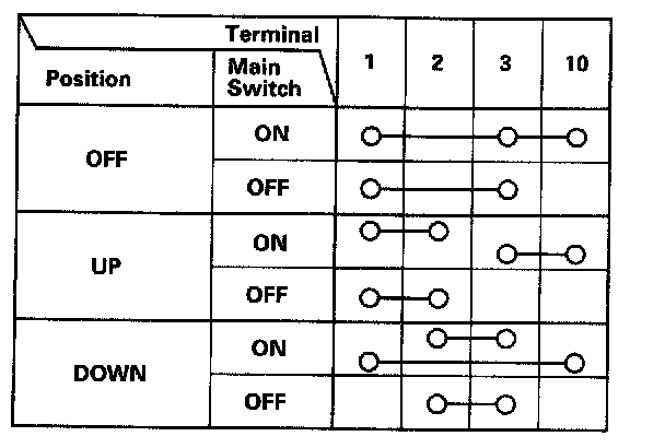 4. Check for continuity between the terminals in each switch position according to the tables.