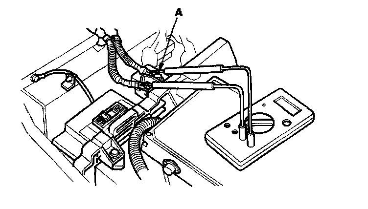 9. Measure voltage at the junction board terminals (A). There should be 30 V or less. If more than 30 V is present, there is a problem in the circuit; do the DTC troubleshooting first.