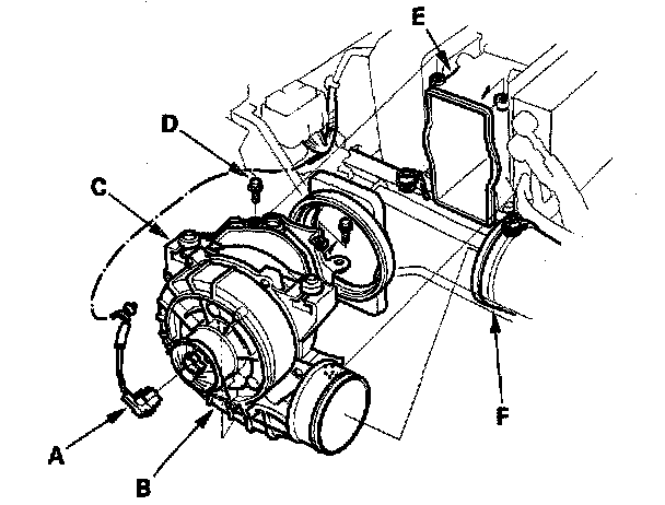 15. Remove the fan duct (F) from the fan (B), and remove the fan.
