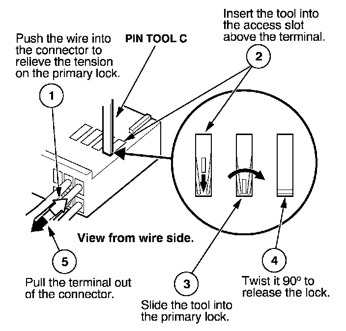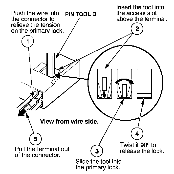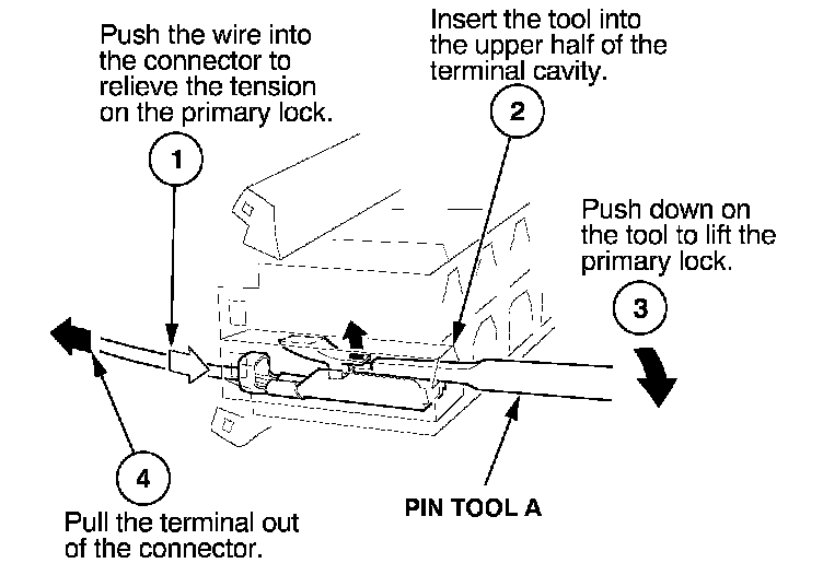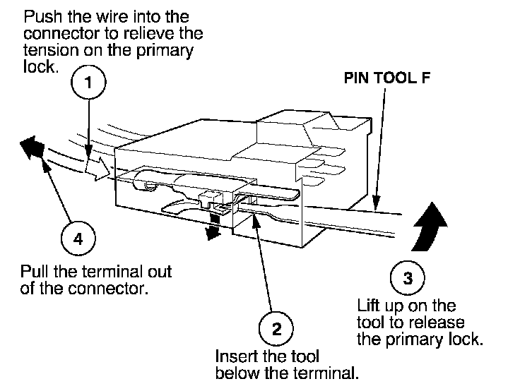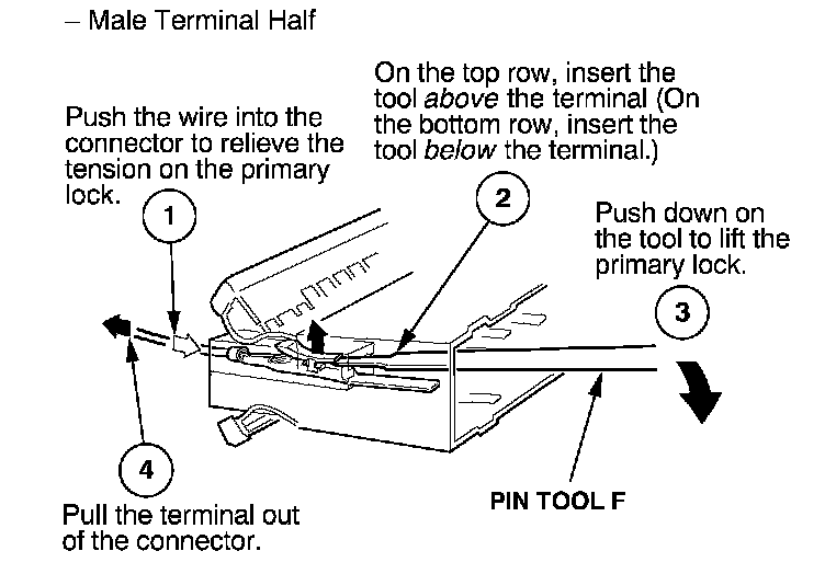 Before you begin, inspect the wire you are about to repair for damage and length. Make sure the wire will be long enough to make a terminal repair without stretching it when you reinstall the terminal in the connector. If the wire is too short, or if access to the connector is too restricted to make a terminal repair, you may need to install a pigtail terminal (a short length of wire with a factory-crimped terminal on it). Refer to HOW TO INSTALL PIGTAIL TERMINALS.