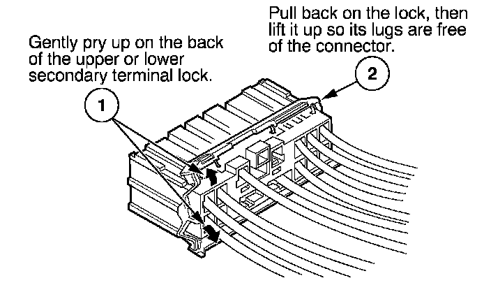 - If it has a secondary terminal lock, go to Connectors With a Secondary Lock. A secondary lock, found on most connectors on some models, is an additional locking device on the connector housing as a backup for the primary lock on the terminal.