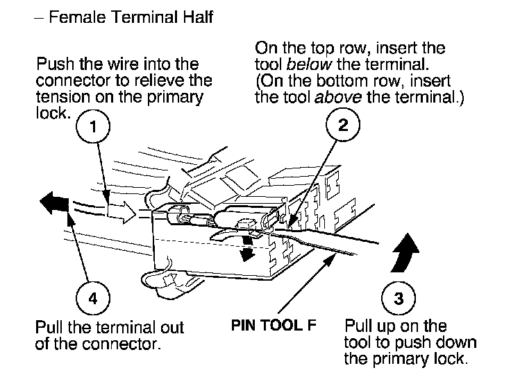 Home >> Honda >> 2004 >> Insight L3-1.0L Hybrid >> Repair and Diagnosis >> Powertrain Management >> Computers and Control Systems >> Engine Control Module >> Diagrams >> Diagnostic Aids >> Terminal Replacement Procedures >> How to Replace Connector Terminals