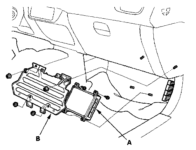 2. Pull the passenger's side carpet back to expose the ECM (A).