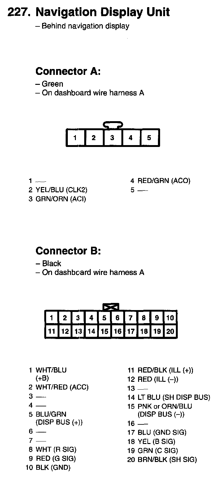 227. Navigation Display Unit Connector A, B: