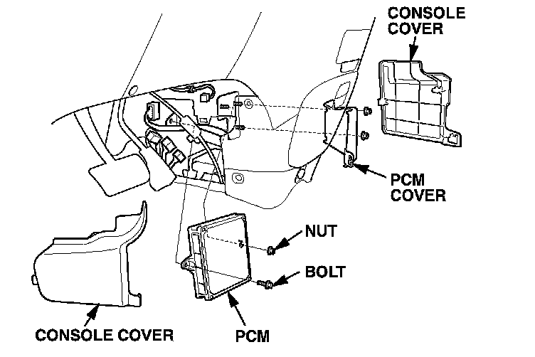 4. Remove the PCM cover, then remove the PCM mounting nut.
