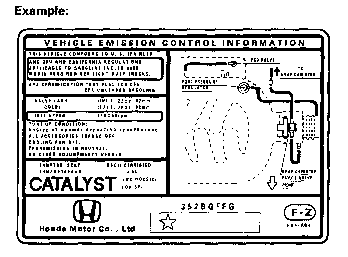 THIS VEHICLE CONFORMS TO U.S EPA INTERIM NONTIER 2 BIN 9 AND CFV LEV REGULATIONS APPLICABLE TO 2004 MODEL YEAR NEW LIGHT-DUTY TRUCKS AND CALIFORNIA REGULATIONS APPLICABLE TO 2004 MODEL YEAR NEW LEV I LEV LIGHT-DUTY TRUCKS.
