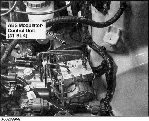 | ABS Modulator Control Unit | At left side of engine compartment. See Figure . |