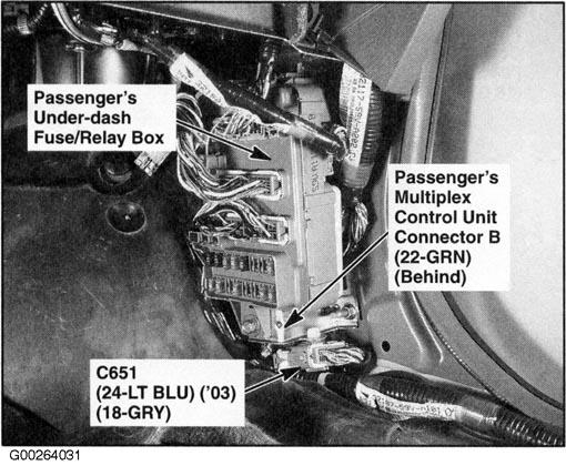 | Passenger's Multiplex Control Unit | Behind right kick panel. See Figure . |