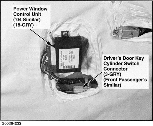 | Power Window Control Unit | Inside driver door. See Figure . |
