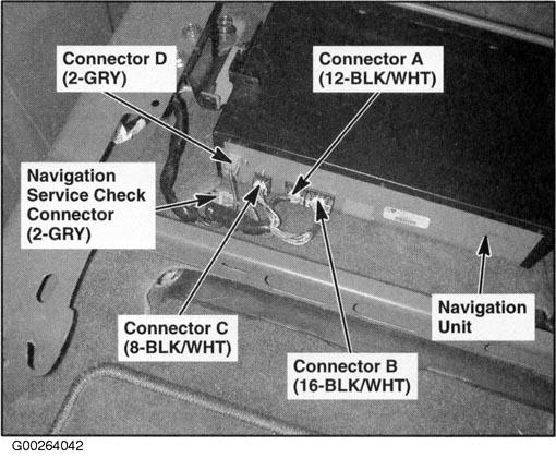 | Navigation Unit | Under right front seat. See Figure . |