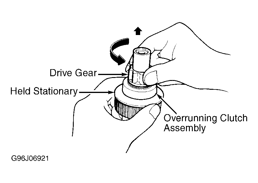 1. Slide overrunning clutch along shaft. If overrunning clutch does not slide smoothly, replace overrunning clutch assembly. Rotate overrunning clutch on shaft. See Fig 1. If clutch does not lock when rotated in one direction and rotates smoothly in other direction, replace overrunning clutch assembly.