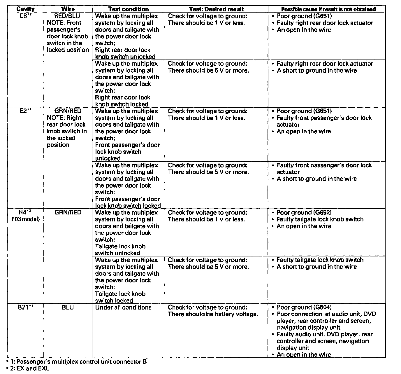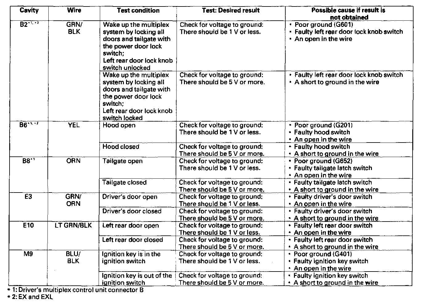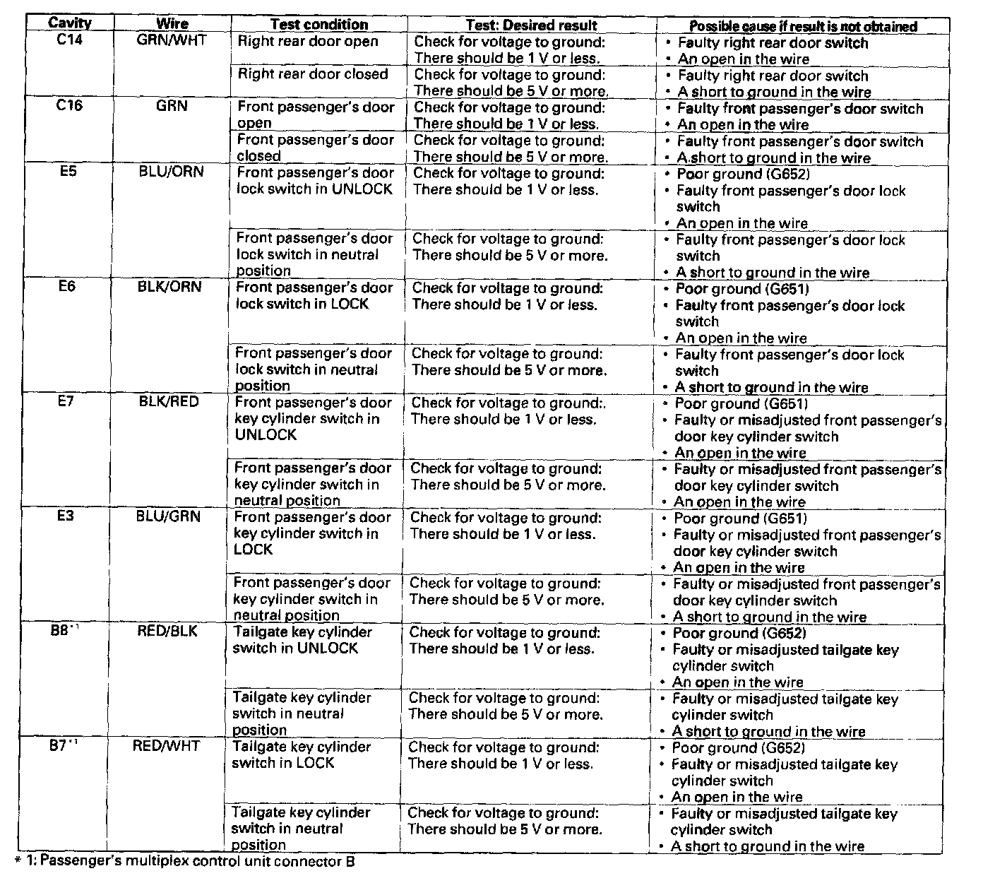 NOTE: These tests cover the door, driver's, and passenger's multiplex control units.