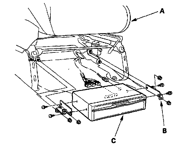 2. Remove the navigation unit bracket (B) from the passenger's seat.