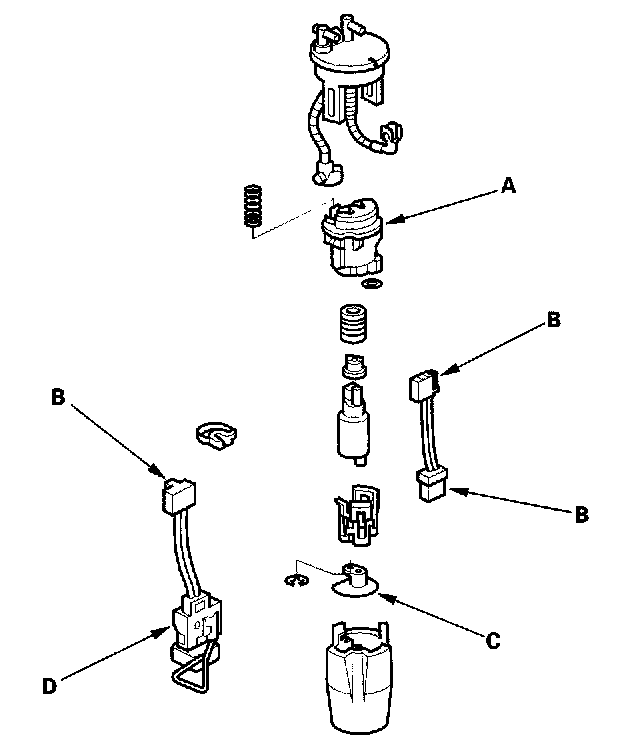 - When installing the fuel gauge sending unit (D), make sure the connection is secure and the connector is firmly locked into place. Be careful not to bend or twist it excessively.