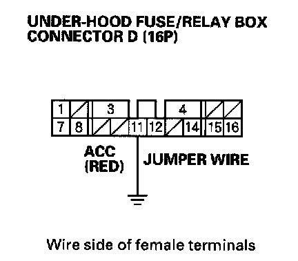 15. Momentarily connect under-hood fuse/relay box 16P connector terminal No.11 to body ground with a jumper wire several times.