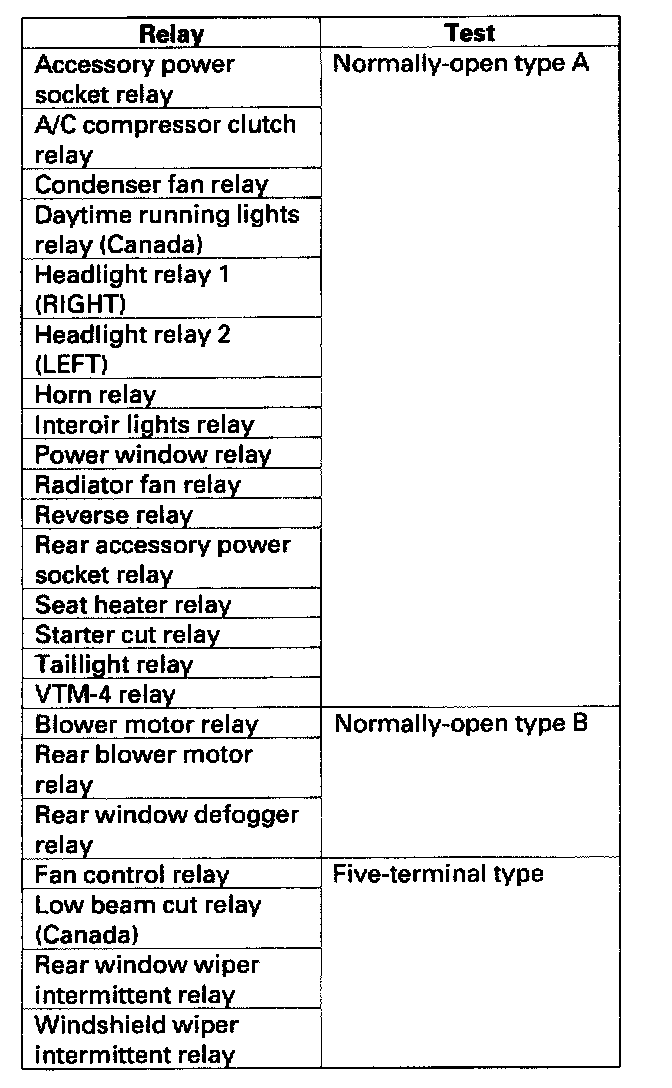 Use this chart to identify the type of relay, then do the test listed for it.