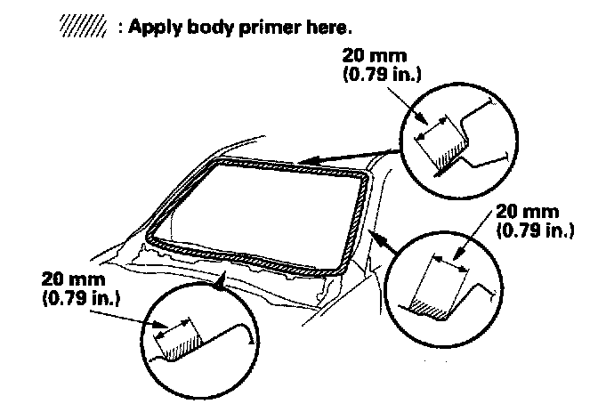 - Do not apply body primer to the windshield and do not get body and glass primer sponges mixed up.