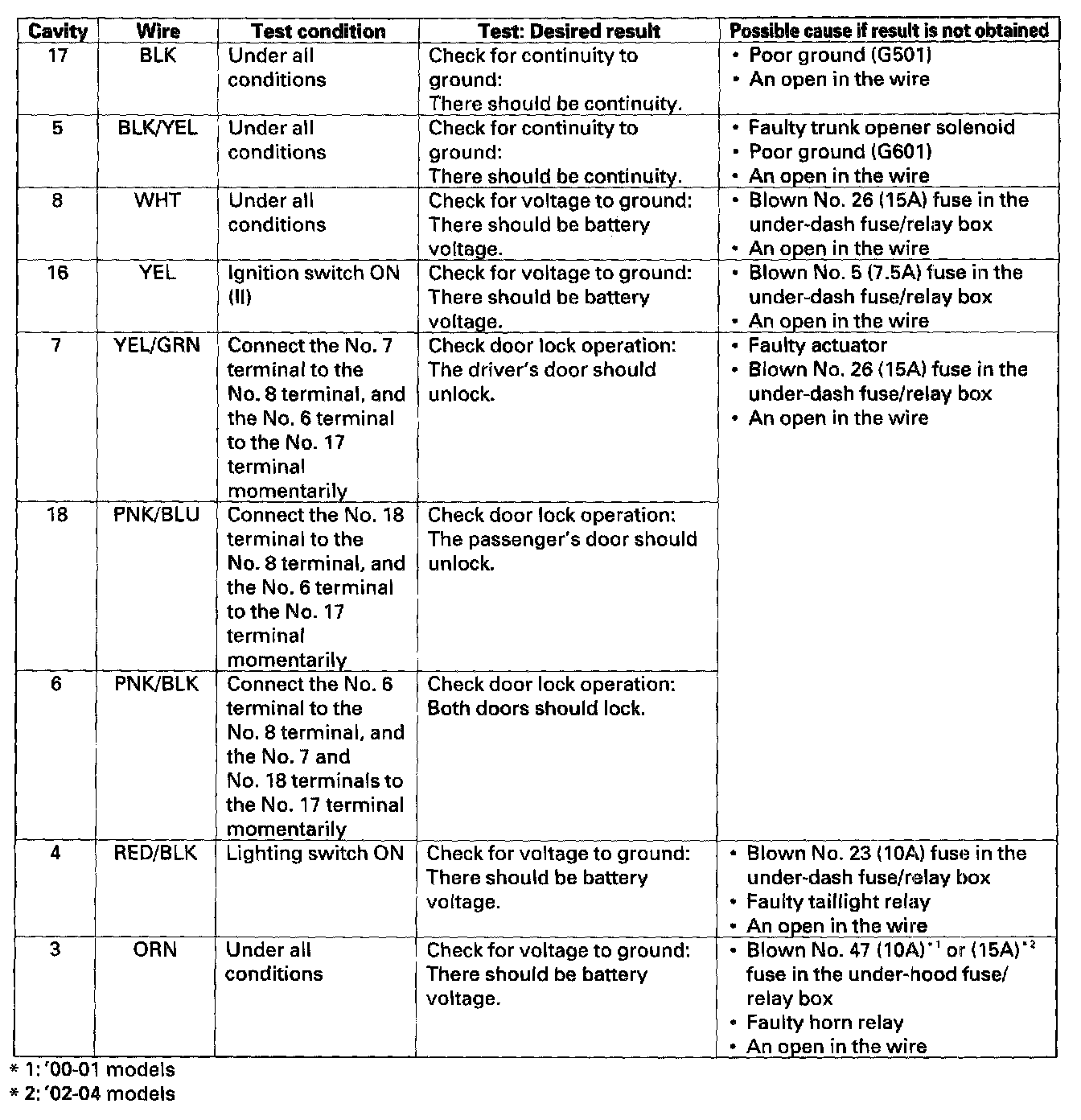 Home >> Honda >> 2004 >> S2000 L4-2.2L >> Repair and Diagnosis >> Body and Frame >> Relays and Modules - Body and Frame >> Keyless Entry Module >> Testing and Inspection