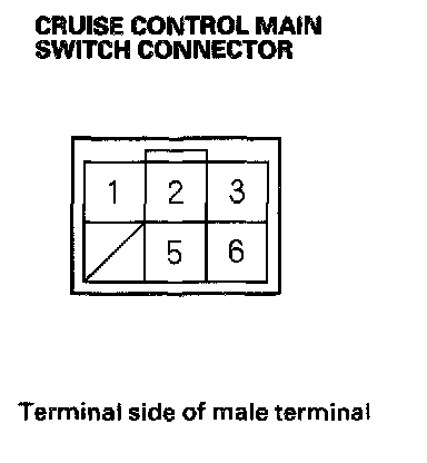 5. If a failure occurs between terminals No.6 and No.5, and between the No.2 and No.3, check the cruise control main switch indicator and illumination.