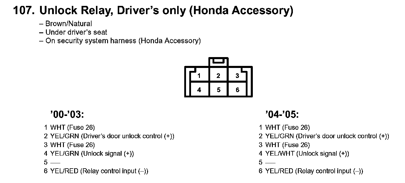 107. Unlock Relay, Driver's Only (Honda Accessory):