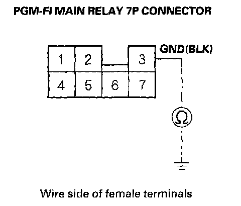 2. Check for continuity between body ground and PGM-FI main relay 7P connector terminal No. 3.