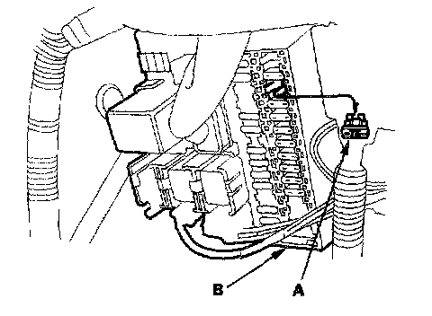 2. Remove the No. 25 BACK UP (7.5 A) fuse (A) from the under-dash fuse/relay box (B) for 60 seconds.