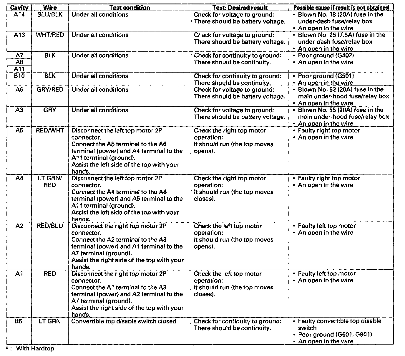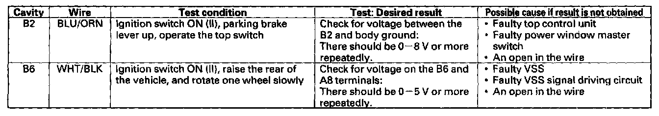 Home >> Honda >> 2004 >> S2000 L4-2.2L >> Repair and Diagnosis >> Relays and Modules >> Relays and Modules - Body and Frame >> Convertible Top Control Module >> Testing and Inspection