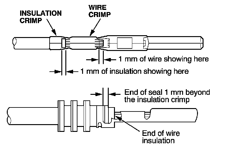 - If you do not have a wire seal, then use the next larger size crimp slot. Position the crimping tool over the insulation crimp section of the terminal, then squeeze the tool with both hands until the stops make contact.