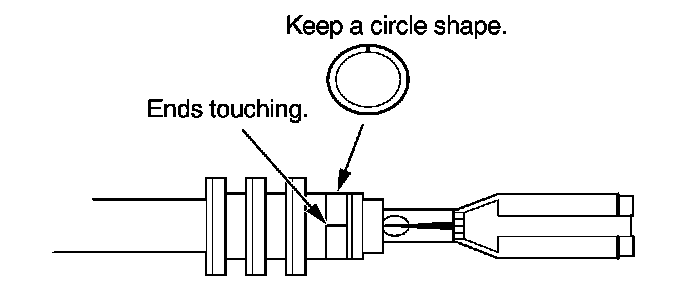 3. Strip the insulation off the end of the wire so the wire fits in the new terminal as shown. (If the wire has a wire seal, replace it with a new one from the kit.)