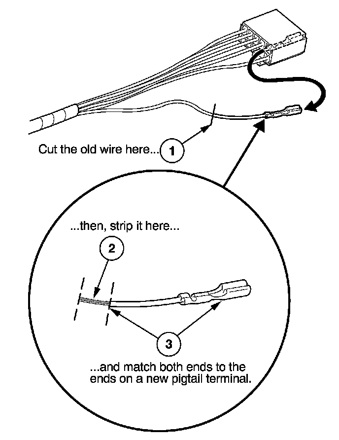 3. Select a pigtail terminal that matches the original wire at both ends (same kind of terminal and same diameter bare wire).