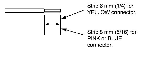 7. If you are using a yellow splice connector, strip about 6 mm (1/4 inch) of insulation off the ends of both wires. If you are using a pink or blue splice connector, strip off about 8 mm (5/16 inch) of insulation.