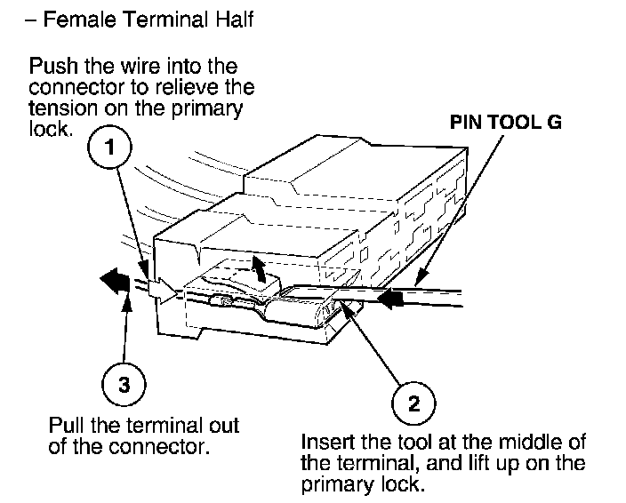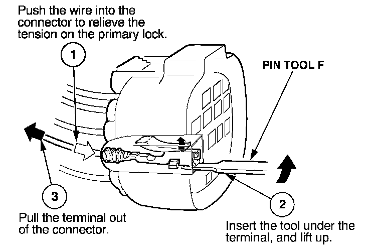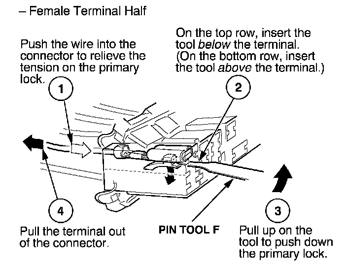 Home >> Honda >> 2004 >> S2000 L4-2.2L >> Repair and Diagnosis >> Relays and Modules >> Relays and Modules - Cooling System >> Radiator Cooling Fan Control Module >> Diagrams >> Diagnostic Aids >> Terminal Replacement Procedures >> How to Replace Connector Terminals