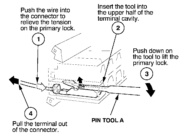 - If it has a secondary terminal lock, go to Connectors With a Secondary Lock. A secondary lock, found on most connectors on some models, is an additional locking device on the connector housing as a backup for the primary lock on the terminal.
